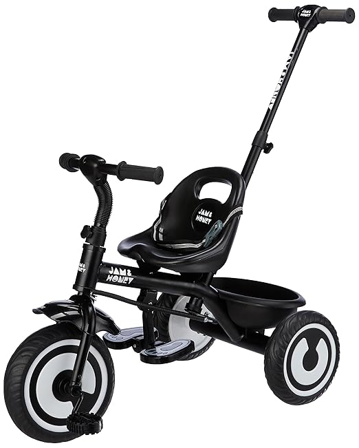 Amazon Brand – Jam & Honey Tricycle for Kids | Seatblet, Parental Handle, & Storage Basket | ISI & BIS-Compliant | for Boys and Girls 2 to 4 Years | 73 x 46 x 90 cm | Black