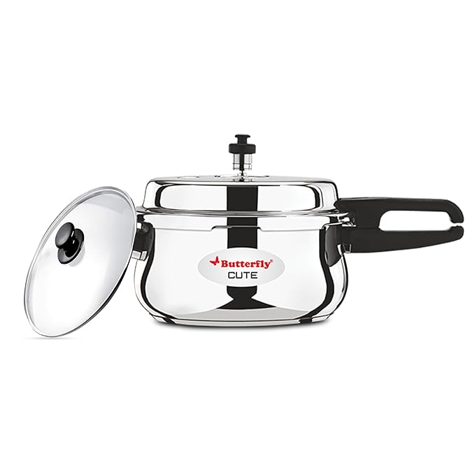 Butterfly Cute Ss Induction Compatible Outer Lid Stainless Steel Pressure Cooker With Glass Lid 3 liter, Silver