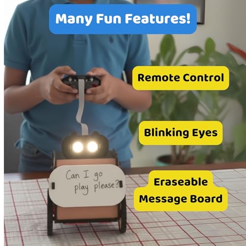 - ENJOYABLE & SCREEN FREE- Hours of screen-free creativity and fun with the Emotibot! Use it to transport items, write and share messages, and even make adorable puppy eyes. The robot comes with a remote controller, allowing children to interact with and control the bot?s movements and actions