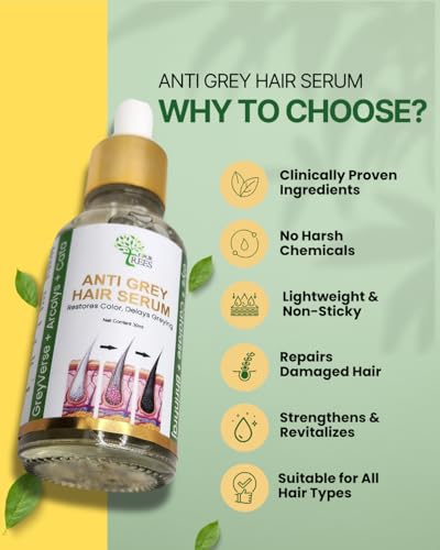 Four Trees Anti Grey Hair Serum For Men & Women | Restores Color, Delays Greying & Strengthens Hair | Enriched with GreyVerse, Arcolys, Catalase & Bhringraj | 30ML
