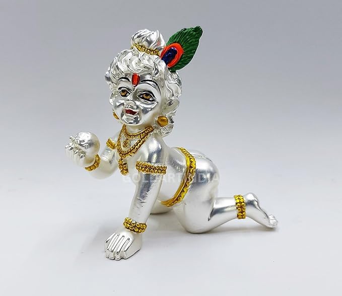 • Divine Design: Beautifully crafted Laddu Gopal in crawling pose, adorned with intricate detailing and vibrant accents.