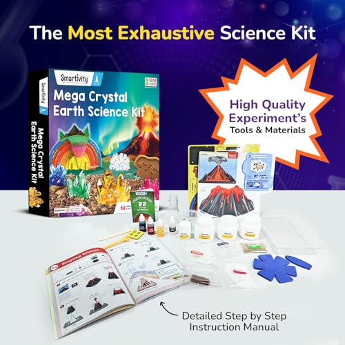 • Mega Earth Crystal Science Kit for Kids: Introduce your children to the wonders of Earth Science with the Smartivity Mega Crystal Earth Science Kit. Featuring hands-on activities like building igloos, growing crystals, creating waves, and erupting volcanoes, this kit offers an engaging STEM experience. Ideal for boys and girls aged 8 to 14, it turns learning into an exciting adventure.