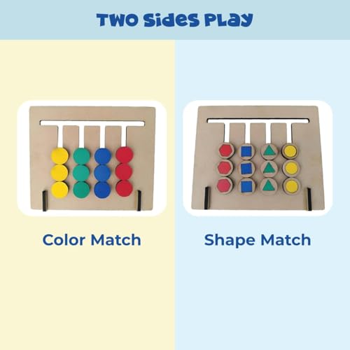 Montessori Slide Puzzle, Wooden Color & Shape Matching Toy for Kids 3+ Years, 35 Challenges, Birthday Gift for Boys & Girls, Educational Learning Activity Game, Travel Friendly