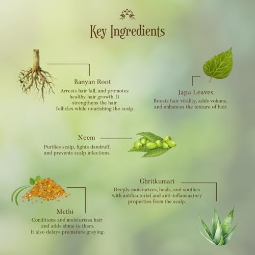 - Supports Hair Growth: Made with Banyan Root, Hibiscus, Neem, Aloe Vera, and Methi, this tonic nourishes the scalp and strengthens hair follicles to promote healthy hair growth.