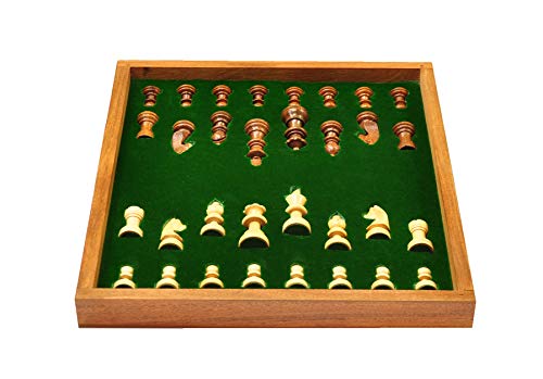 PALM ROYAL HANDICRAFTS 12 Inches Handmade Drawer Wooden Chess Board Set Made With Indian Rosewood | Inbuilt Storage Compatment For Chessmen – (12 X 12 Inches) Brown, Big Kid