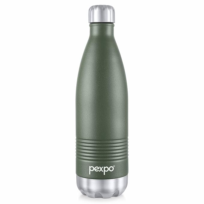 PEXPO Echo Delux Hot & Cold ISI Certified Flask | 750 ml Stainless Steel Water Bottle – Military Green | Office Bottle | Workout | Travelling | Home | Adults & Kids