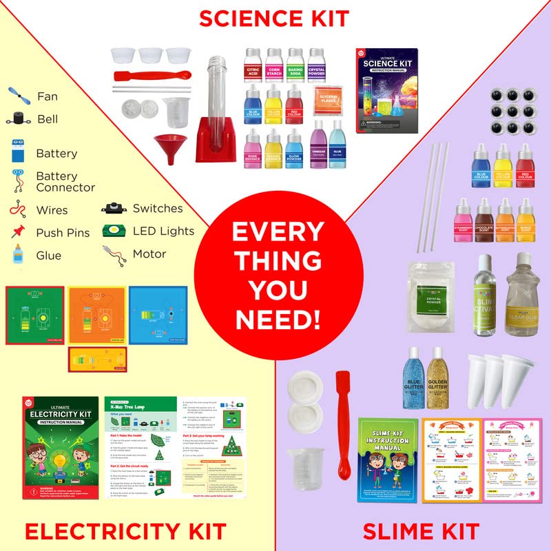 Science Gift Set 3-in-1 of Slime Kit + Science Kit + Electricity Kit | Gifts for Kids Ages 8,9,10,11,12,13,14 Years | Educational Toys for Boys & Girls| Gift Ideas for Boys & Girls|