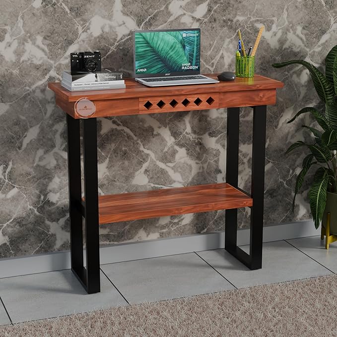 Sheesham Wood: Crafted from quality Sheesham wood, this console table exudes elegance and durability, Stylish Design: The sleek design of this console table makes it a perfect addition to your living room, entryway, or office, enhancing the aesthetics of any space.