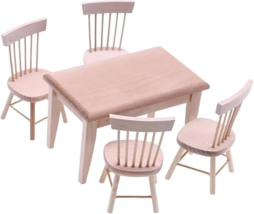 5 Pcs Miniature Furniture, Doll House Set with Realistic Design, Sturdy Craftsmanship for Creative Play and Home Decor,Table and Chair Set