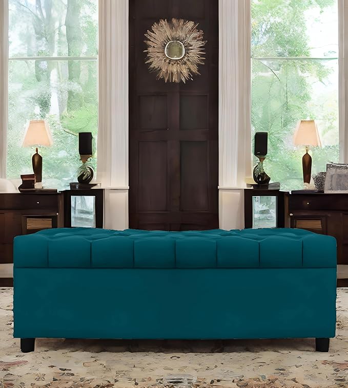 AMATA Eagle Solid Wood 2 Seater Ottoman/pouffe Ocean Blue Suede Velvet Fabric Perfect for Home Living Office Room and Guests (Ocean Blue 3, 2 Seater)(3 Year Warranty)
