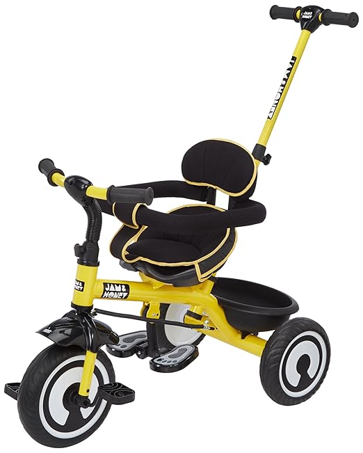 Amazon Brand – Jam & Honey Tricycle for Kids | 2-in-1 with Pedalling & Parental Control | Cushioned Seat | Guardrail & Anti-Slip Handle for Safety | for 2 Years+ Boys and Girls | Yellow and Black
