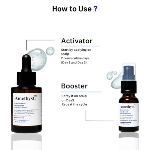 - HOW TO USE – Use the Amethyst Activator the serum directly on the scalp for 2 consecutive days and use your fingertips to massage the serum into the scalp, And on Amethyst Booster spary on Day 3 .Leave it overnight for best results. Use it regularly every night over a 3 month period.