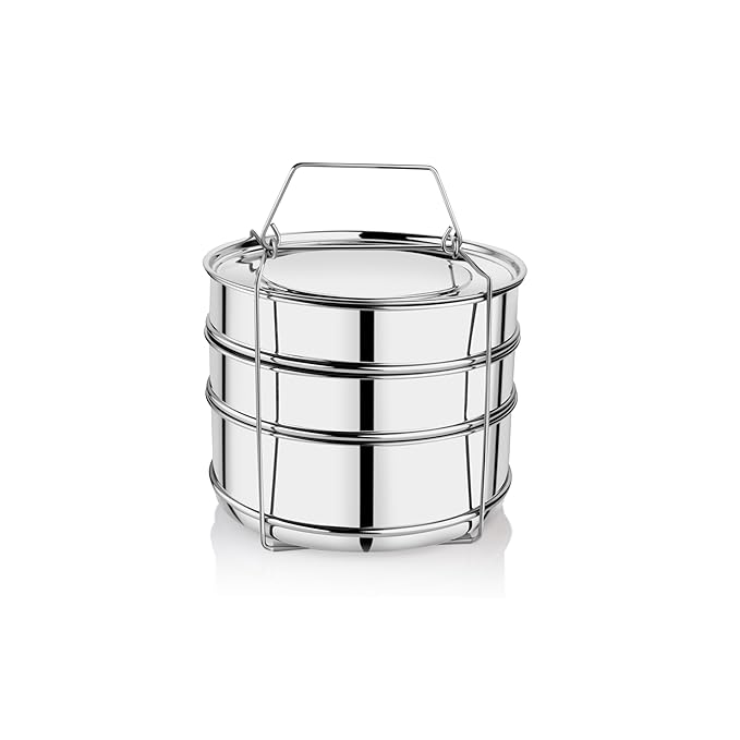 Embassy Stainless Steel Cooker Separator | Suitable for 5 Litres Prestige Popular and Popular Plus Outer Lid Pressure Cookers | 3 Containers With Lifter | Dimension 17x17x15 cm