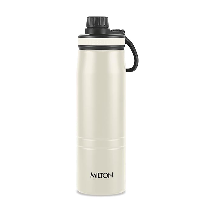 Milton Sparkle 600 Thermosteel Water Bottle with Easy Sip Cap and Handle, 620 ml, Vacuum Insulated Stainless Steel, Hot and Cold, On The Go Bottle for Office College, Ivory