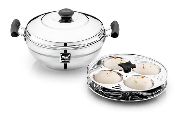 - Product Information: Type: Cookware, Material: Stainless Steel, Capacity: 8 Idlis, Package Contents: Idli Maker, 2 Idli Plates and Steel Lid