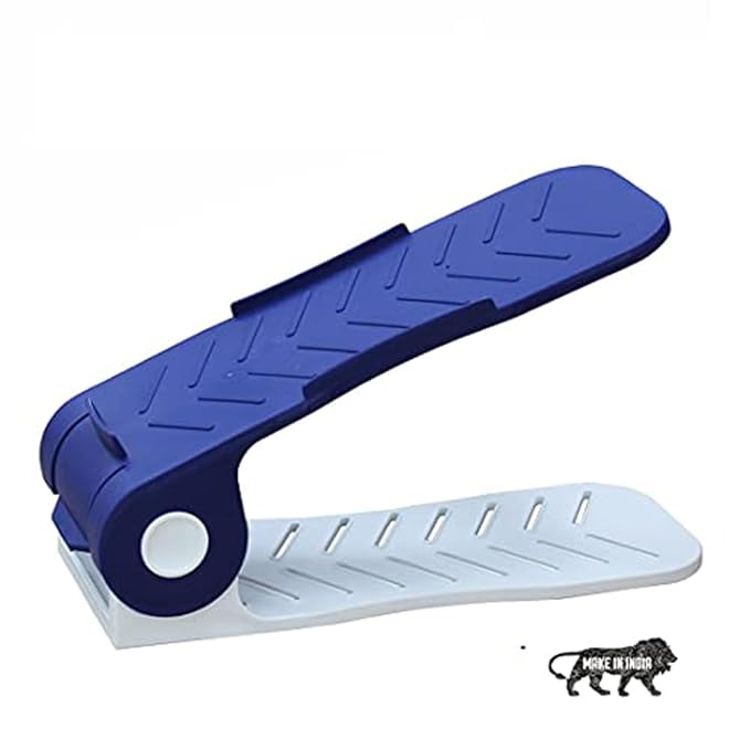 Pack of 6 PCS. Adjustable Height Shoe Organizer/Organiser/Shoe Shelf/Rack/Space Saver, Blue & White Combo, Plastic, Cm