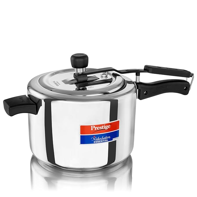 Prestige 5L Stainless Steel Nakshatra Essential Svachh Pressure Cooker|Deep Innerlid for spillage Control|Even Heating Triply Bottom|Gas Compatible|Metallic Safety Plug|5 Years Warranty|ISI Certified