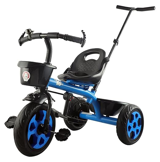 Toyzoy Pluto Kids|Baby Trike|Tricycle with Parental Push Handle, Ting Tong Bell & Dual Storage Basket for Kids|Boys|Girls|Age Group 2+ Years (Blue)