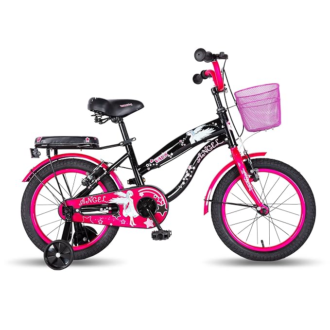 - QUALITY: Vaux Angel 14T is an elegantly crafted bicycle for kids, it is made up of Argon Welded HI-TEN Steel Frame with attractive angel graphics, a Rigid Fork, and fancy colored Steel Rims which have 14*2.125inch Ralson tubular tyres mounted on it, which provides a firm grip on the surface. The baby cycle for kids has a single-piece crankset which adds to the quality and smoothness of the riding.