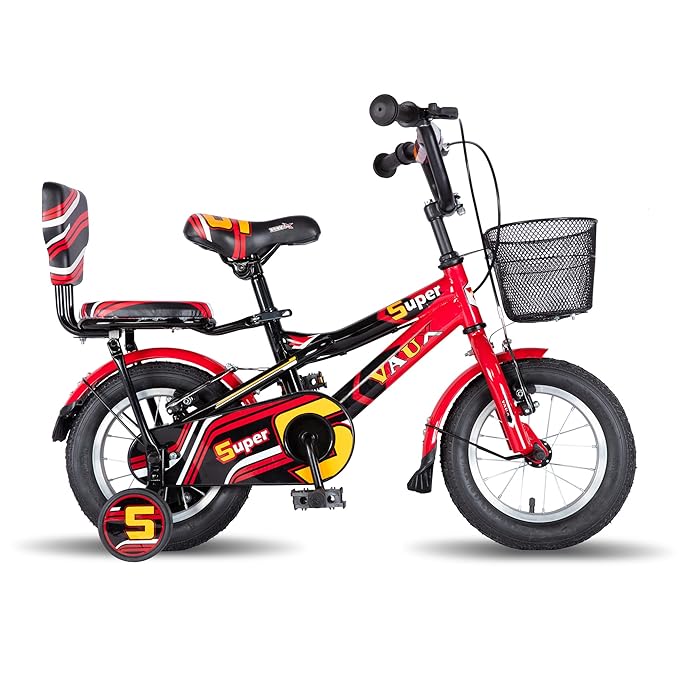Vaux Super Kids Bicycle for 2 to 4 Years Old with Training Wheels, Backseat & Basket Ideal for Both Boys & Girls with Steel Frame & Alloy Rims, 95% Assembled Delivery, Ideal Height:2ft to 3ft(Red)