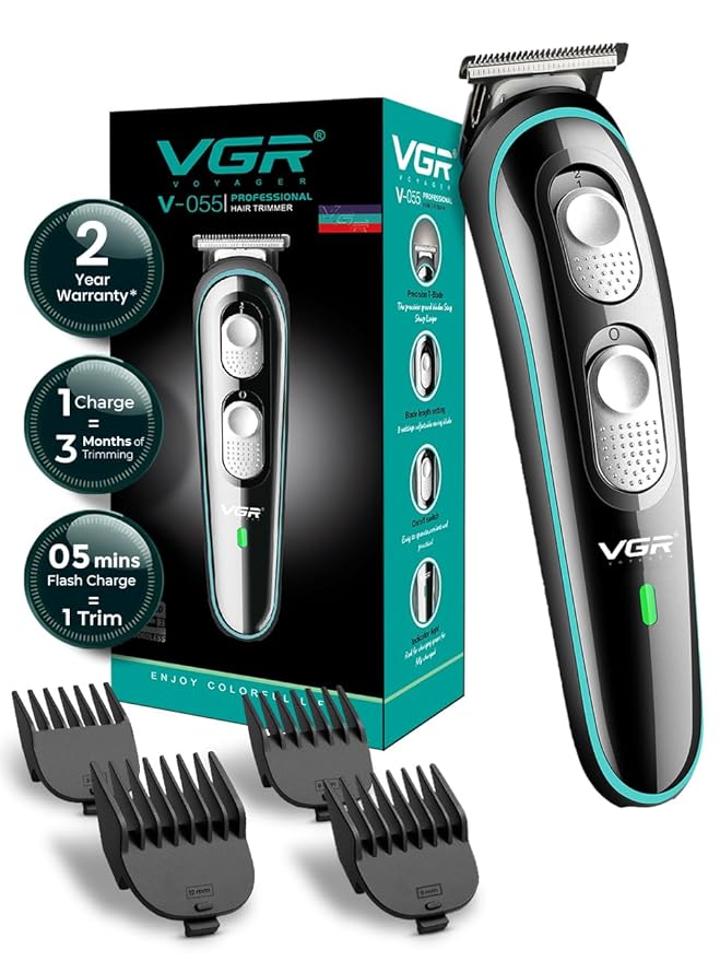 Be the first to review “VGR V-055 Professional Hair Trimmer for Men | Cordless/Corded Beard & Hair Clipper | Adjustable T-Blade | 4 Guide Combs | 120 Min Runtime | USB Charging (Black)”